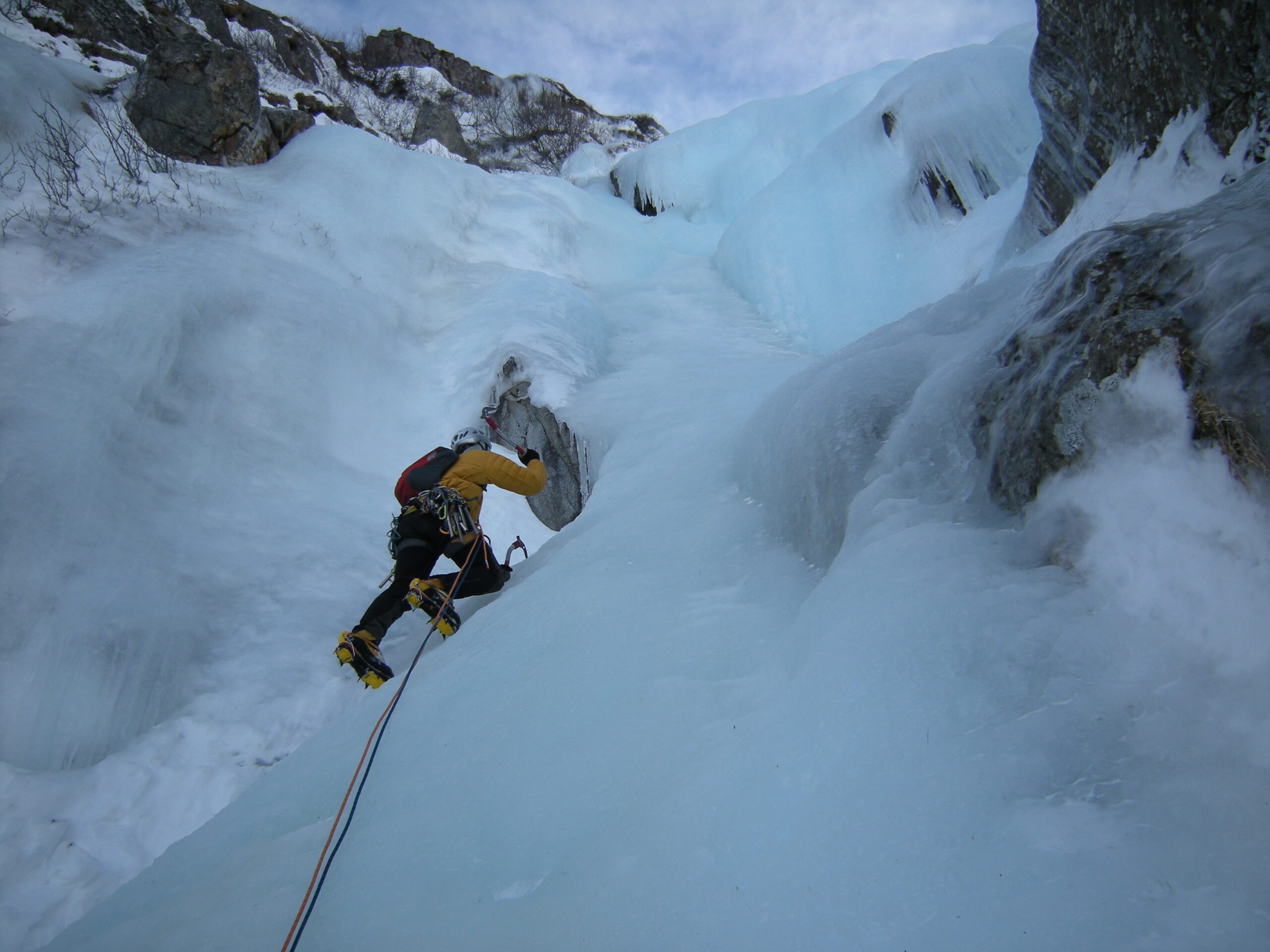 Il punto di ritrovo sarà stabilito dalla Guida a seconda della località scelta, in una falesia di ghiaccio, probabilmente le località saranno l’Alta Val di Susa e le fantastiche falesie di ghiaccio del Brianconnais. Il primo giorno si imparerà ad assicurare il secondo di cordata, si affronteranno salite in piolet traction su cascate di massimo III grado e si scoprirà l’utilizzo e la scelta dei materiali. Il secondo giorno si consolideranno le basi e introdurremo argomenti come l’utilizzo delle viti da ghiaccio e la costruzione delle soste, ci sarà la possibilità di organizzare una terza uscita per provare ad affrontare una salita da primi di cordata con una corda di sicurezza. Inoltre sarà possibile arrampicare su una cascata verticale, più difficile introducendo la tecnica di progressione a triangolo.
